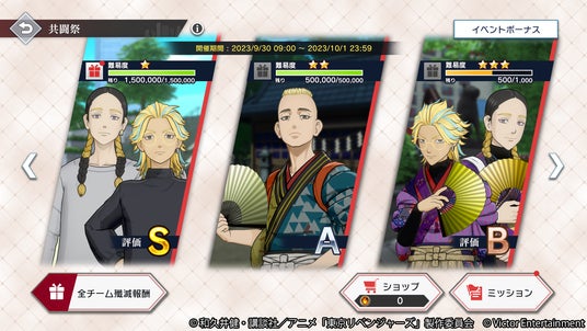 ビクターエンタテインメント株式会社(本社:東京都渋谷区、代表取締役社長:植田 勝教)は、App store、Google Play、DMM GAMESにて好評配信中『東京リベンジャーズ Last Mission』(略称:ラスリベ)において、年末年始の大型のキャンペーンを実施いたしました。開催期間は、2024年12月26日(木)~2025年1月8日(水)までを予定しています。