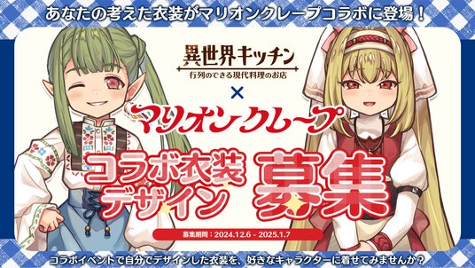 ポッピンゲームズジャパン株式会社が開発する、Android/iOS向け完全新作スマートフォンゲーム『異世界キッチン 行列のできる現代料理のお店』は、2025年4月、『マリオンクレープ』とのコラボイベントを開催することをお知らせいたします。さらに本日から、コラボイベントに登場する「コラボ衣装デザイン募集」を実施いたします。