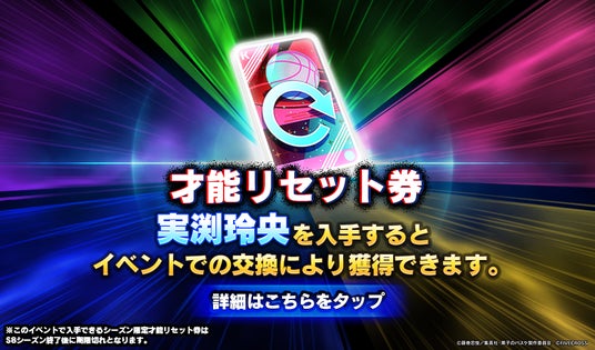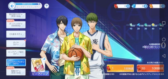 実渕玲央の登場にあわせ、実渕玲央の特訓カードなどの報酬を入手できる選手育成ガチャ、実渕玲央の覚醒カードを入手できる覚醒ガチャや、実渕玲央の専用スキン「ペイサーズ」が入手できるボックスガチャ、また「期間限定試練(実渕玲央)」も開催中ですのでお見逃しなく。