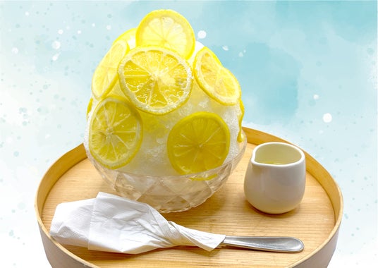 ポップなイエローのはちみつレモンソースをたっぷりかけたかき氷を甘酸っぱいはちみつレモンスライスで覆い、さらに爽やかなフレッシュレモンスライスをトッピング!爽やかなレモンの美味しさを味わいつくせる『はちみつレモンづくし』旬の果肉フルーツソースをふんだんに使用したかき氷がこれからも続々登場予定♪この季節しか味わえないかき氷を是非お楽しみください♪