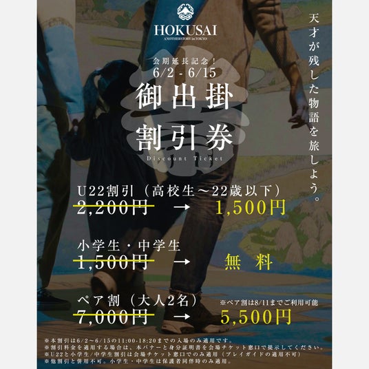 ※本割引は 6月2日(月)~6月15日(日)の11:00-18:20 までの入場のみ適用。