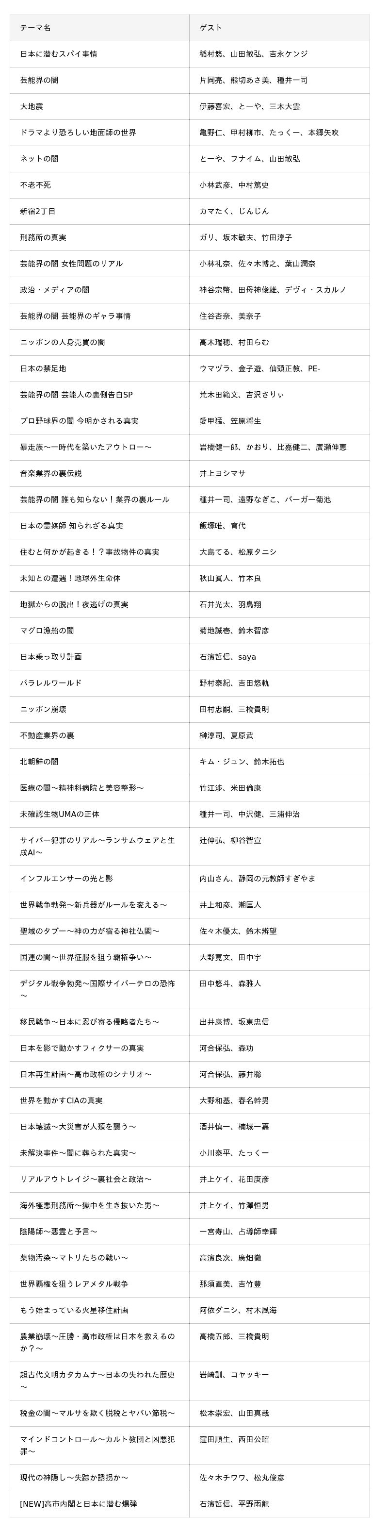 【配信中のテーマ・各回ゲスト】