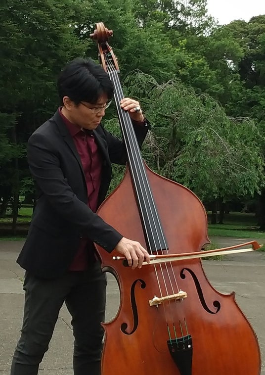 俵山ナオユキ(コントラバス)東京都出身。元プロボクサーという異色の経歴を持つベーシスト。プロボクシング引退の後ベースを弾き始め、音楽専門学校メーザーハウスにてコントラバスを専攻。ジャズ、ポピュラー音楽、理論、作編曲を学ぶ。ジャズではアルトサックス大友義雄グループや、自身のバンド『ジャズ・アルヘンティーナ』など、様々なライブ、セッションへ参加。アルゼンチンタンゴでは、『鈴木崇朗とエストレージャス・デ・パンパ』、バンドネオン平田耕治グループなどで演奏している。