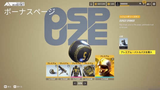 新しいバトルパスには、シーズン1のスポンサー「OSPUZE」をテーマにした、光り輝く「OSPUZE SPARKLING HELMET」や、ユニークな「フェンシング」のスキンなど、計106種類のアイテムが用意されています。