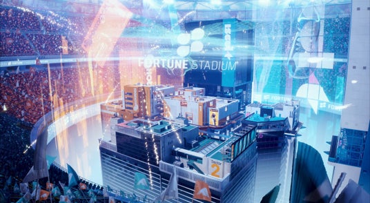 シーズン4で実装される新アリーナ「フォーチュン・スタジアム」は、今シーズンのスポンサー「ENGIMO」、「ISEUL-T」、「HOLTOW」をテーマに飾られた3つのゾーンで構成されており、マップ中央の大きなジャンプパッドをはじめとする様々な移動手段を通じて、スピード感あふれるプレイを体験することができます。