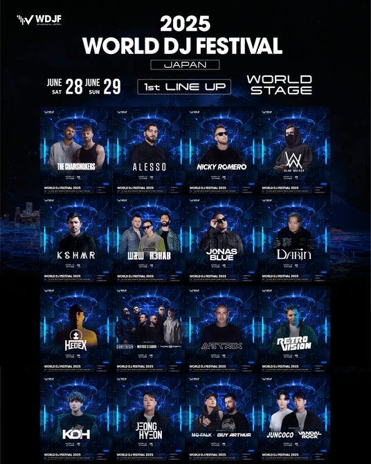 World DJ Festival Japan 2025 製作委員会は、2025年6月28日(土)・29 日(日)の2日間、幕張メッセ 国際展示場9-11ホール (千葉市美浜区)にて開催される「World DJ Festival Japan 2025」の第1弾アーティストラインナップ16組を発表いたします。