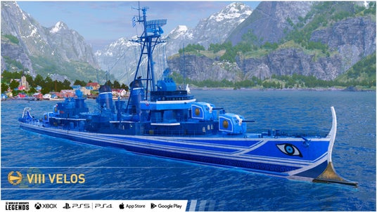 『World of Warships: Legends』における「Velos」はパン・ヨーロッパの Tier VIII プレミアム駆逐艦です。装填速度と旋回速度に優れる 4 門の砲と装填速度の高い魚雷を備え、煙幕の効果時間が長い強化版の発煙装置を擁しています。移動速度が高く、機動力も良好な艦艇です。