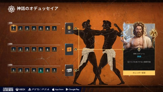 さらに、5周年では古代ギリシャからインスピレーションを得たコンテンツとして、「アテナ」、「ポセイドン」、「ゼウス」をイメージした新しい艦長コスチューム、「神話のオデュッセイア」カレンダー、イベント専用通貨「ドラクマ」が登場します。
