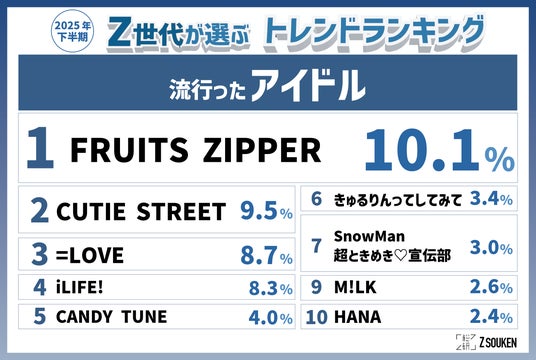 Z世代が考えた「2026年上半期ネクストトレンド予想」も公開!『モンチッチ』が再熱。『FRUITS ZIPPER』『CUTIE STREET』『=LOVE』など日本のアイドルが3位までを独占。