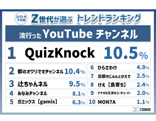知的エンタメ集団の『QuizKnock』が急上昇1位に!今年で10周年を迎え、さらに注目を集める存在に!『都のオワリですチャンネル』や『ガミックス』などの単独YouTuberもランクイン!
