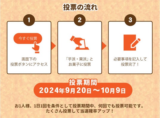 『芋栗合戦2024~みんなが好きな秋の味覚はどっち?~』イベント開催ページでは、9月20日(金)~10月9日(水)のイベント中に人気投票を開催。