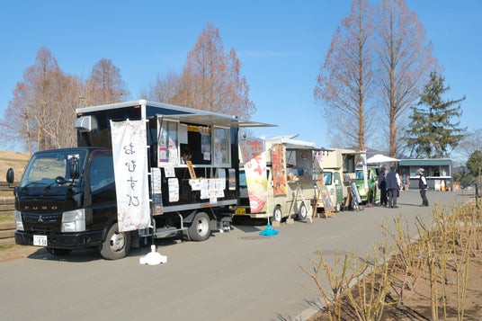 キッチンカーレストランエリアには、日替わりでキッチンカーが登場!お花見しながら、園内のお好きな場所でお召し上がりいただけます。