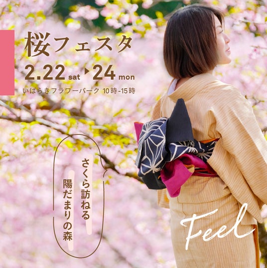 【いばらきフラワーパーク】着物×桜!河津桜から始まる桜リレーがスタート!陽だまりの森をめぐる「桜フェスタ」開催
