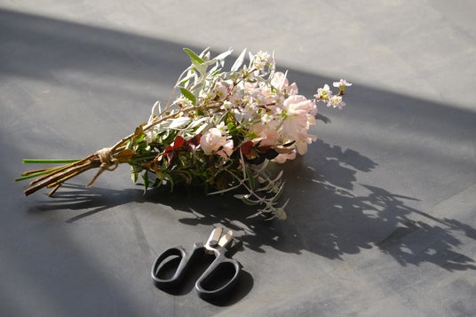 フローリストと一緒に、花やさと山で河津桜を摘んで、春のお花とあわせてブーケをつくる体験。
