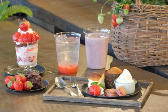 園内のレストランやカフェ、ベーカリーでは地元の苺を使ったメニューを販売中!