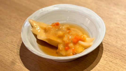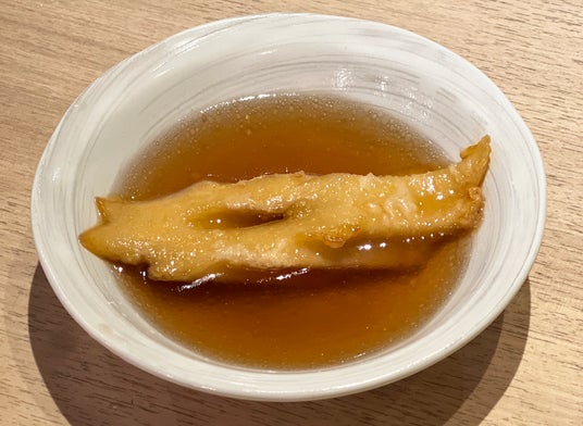 揚げちくわぶ鱧(ハモ)出汁で炊いたもちもちのちくわぶをカリッと揚げてお出汁をかけました。いつもと違うちくわぶの食感をお楽しみいただけます。