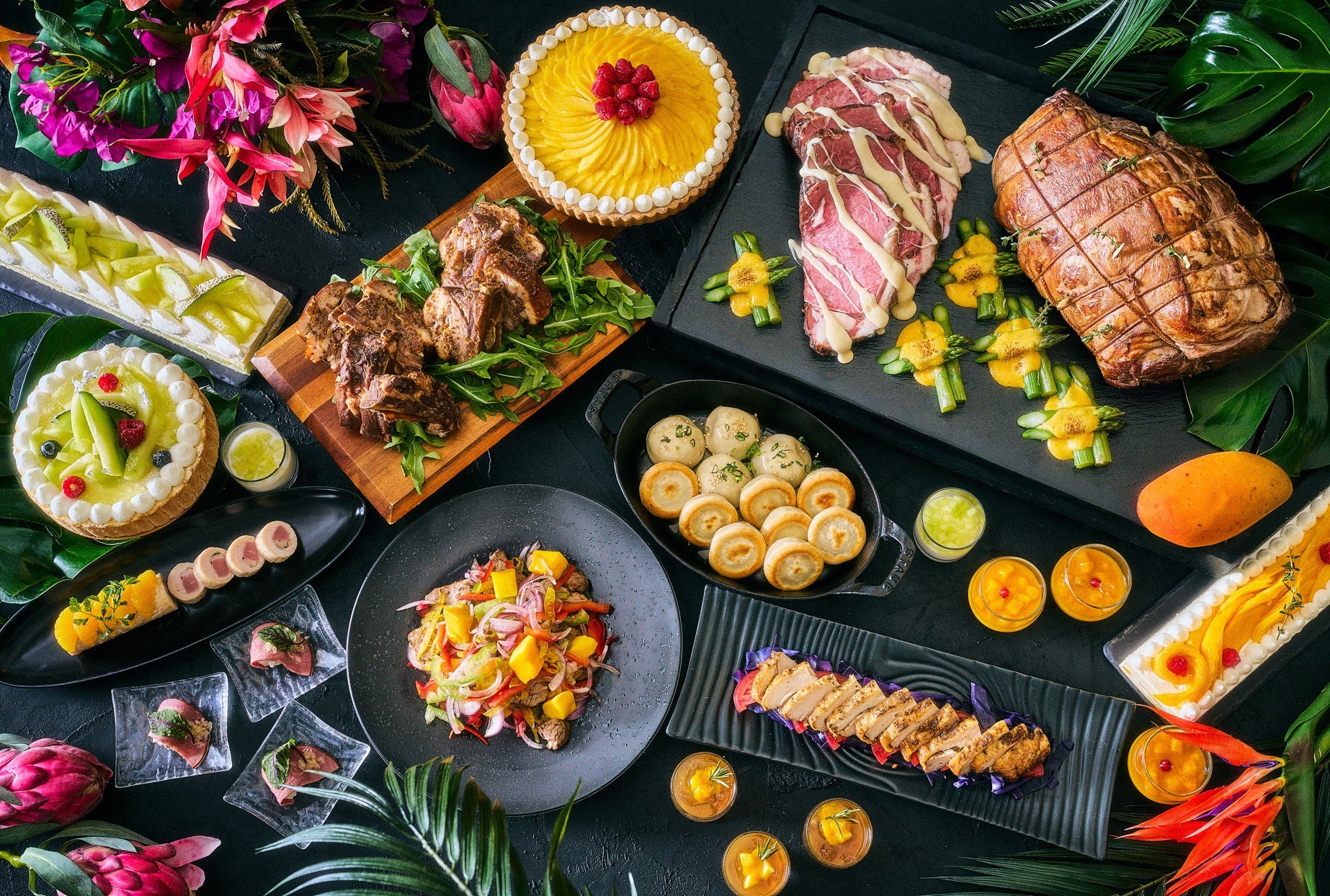 本フェアでは、シェフが目の前で仕上げるライブ感あふれるグリル料理を主役に、食欲をそそる多彩なミートメニューを取り揃えました。デザートエリアには、芳醇な香りのマンゴーとみずみずしいメロンをふんだんに使用した、見た目にも鮮やかなスイーツが並びます。