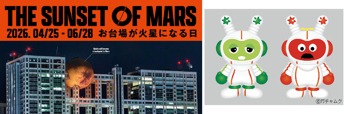 【お台場】GWは火星旅行へ!フジテレビ球体展望室で『THE SUNSET OF MARS』開催。最新VRで“自らの足で歩く”火星探査!ガチャピン・ムックの限定グッズやNFTスタンプラリーも!