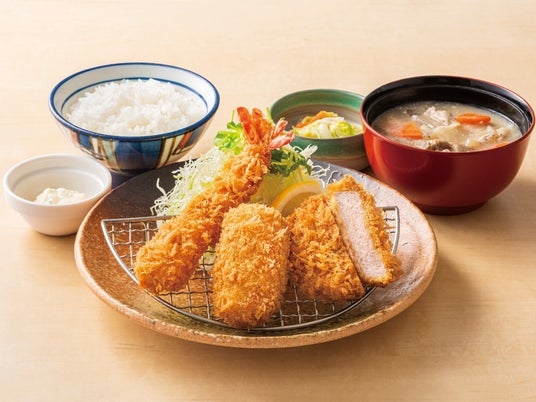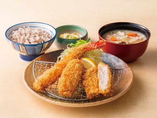 ○かにコロとヒレかつ&天然海老フライ(小)定食