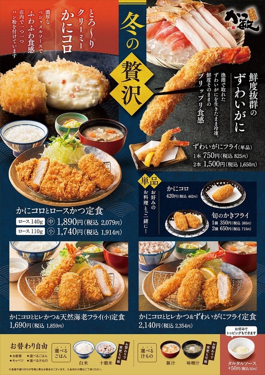 株式会社アールディーシー(代表取締役社長:大島敏彦)グループのとんかつ業態、株式会社ケイディーアール(取締役社長:清水晴之)は、冬の贅沢「とろ~りクリーミーかにコロ」と「ずわいがにフライ」を販売開始しています。