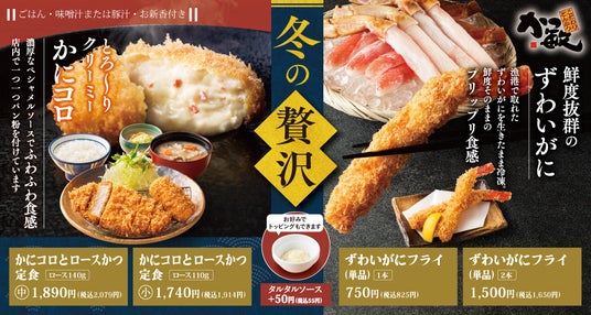 【かつ敏】今だけ「冬の贅沢」自家製かにコロと、バイヤー厳選のずわいがにフライが期間限定販売!