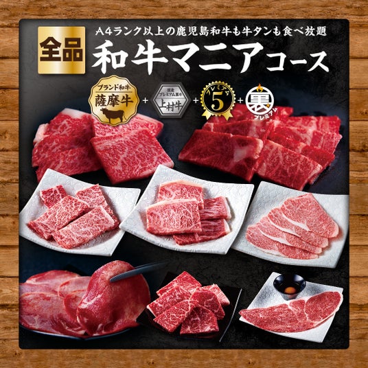 ◆A4ランク以上の黒毛和牛も牛タンも食べ放題!全品『和牛マニアコース』 KAMIMURA BAR付き