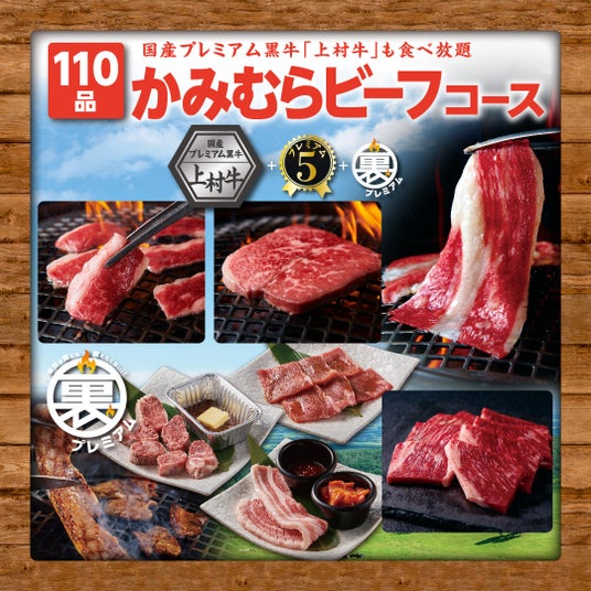 ◆国産プレミアム黒牛「上村牛」も食べ放題!110品『かみむらビーフコース』 KAMIMURA BAR付き