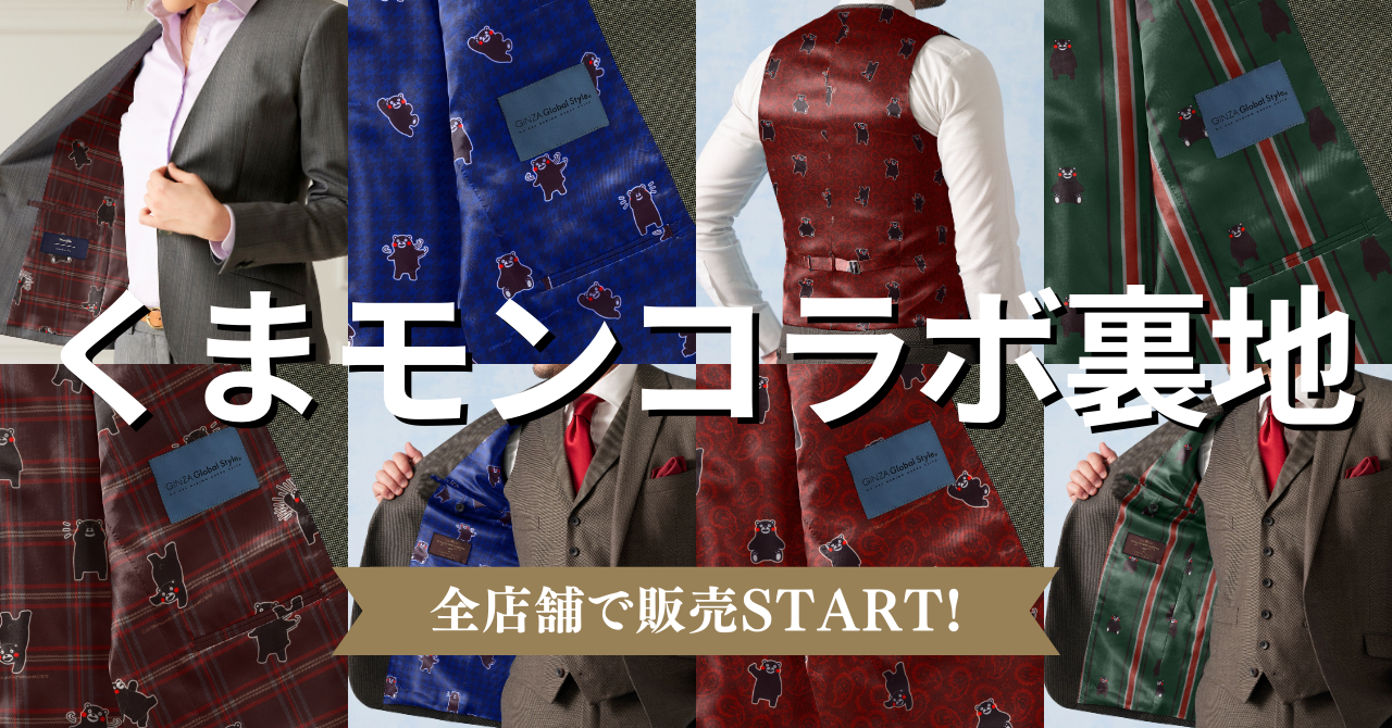 オーダースーツ専門店「グローバルスタイル」を運営するグローバルスタイル株式会社(東京証券取引所 スタンダード市場:7126、本社:大阪市中央区、代表取締役社長 田城弘志)が、『くまモン』とのコラボレーション商品(裏地)4種類を、全国のグローバルスタイル全店舗と、オンラインオーダーサービスにて販売開始いたしました。