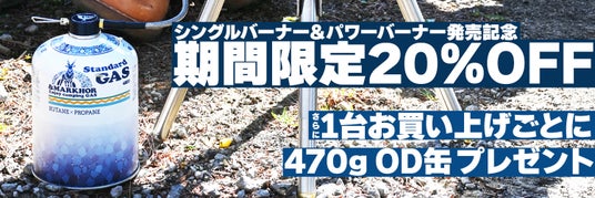 今なら全商品2種20%OFF さらに470gのOD缶を1台購入ごとにプレゼント!