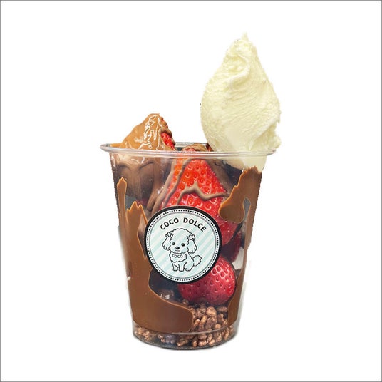 ふっくら丸いあまおうにチョコレートをかけ、お好みのジェラートを乗せて。
