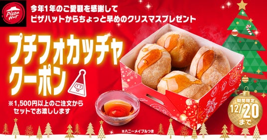 今年一年のご愛顧に感謝を込めて、ピザハットから新商品「プチフォカッチャ」が登場!そして、ささやかなちょっと早めのクリスマスプレゼントとしてクーポンをご用意いたしました!
