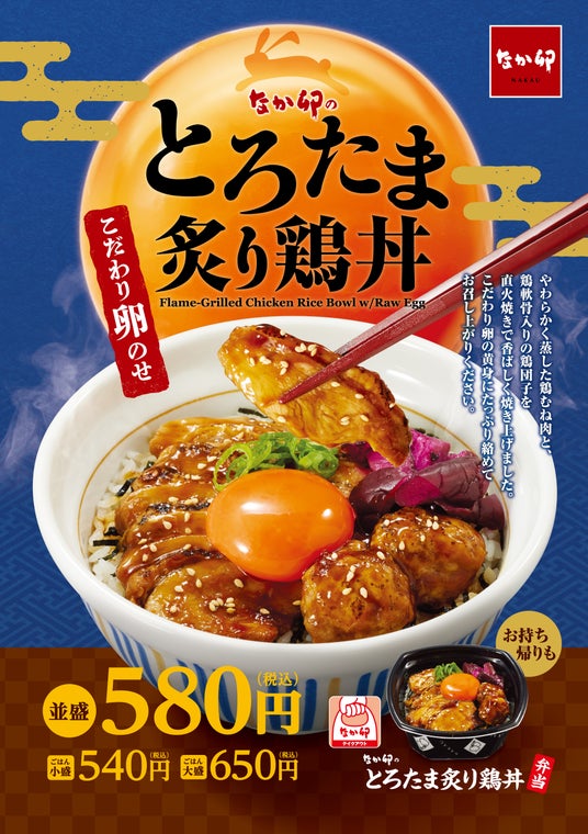 株式会社なか卯(代表取締役社長:池松 博誠 本社:東京都港区)が展開する丼ぶりと京風うどんの「なか卯」は、9月4日(水)AM11:00より、「とろたま炙り鶏丼」を販売します。