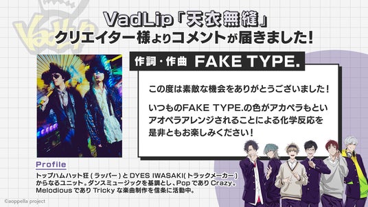 VadLip「天衣無縫」の楽曲を制作する『FAKE TYPE.』よりコメントが到着!