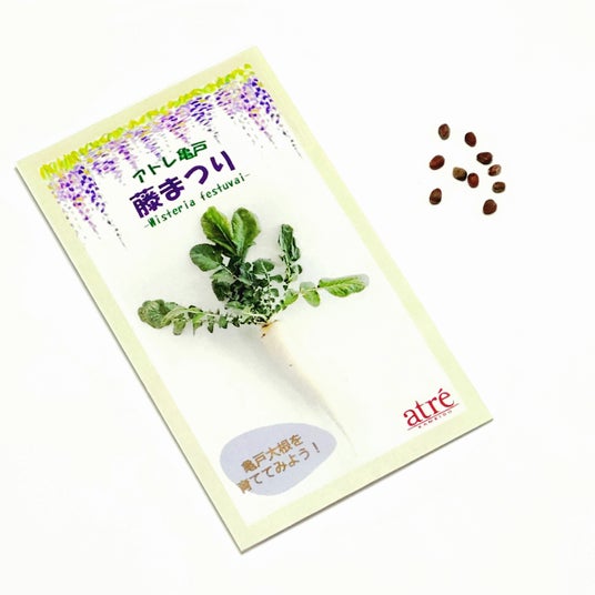 1860年~1864年頃の江戸時代末期から昭和初期まで、亀戸香取神社周辺で栽培されていた亀戸大根。その亀戸大根の種をアトレ公式LINEを友だち追加した方先着100名様にプレゼント。アトレ亀戸オリジナルの栽培マニュアル付きです。