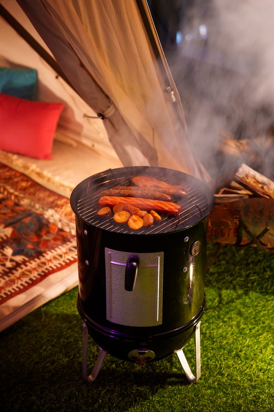 「Weber(R)」のスモーキーマウンテンクッカーから漂う豊かな香りが食欲をそそるスモークチーズやナッツで始まり、スモークサルシッチャやベーコンを加えて仕上げるジューシーなグリーンサラダは、Weber(R)ならではの蒸気とスモークを活用した調理法により、素材の風味を最大限に引き出します。
