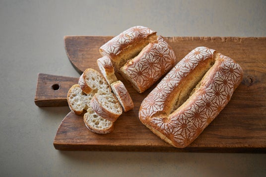 「京のパン」 けしの実と白ごまを混ぜた冷蔵発酵のパンを和柄(麻の葉模様)で飾りました。生地中の水分量が多いため、吸い付くような食感と焼き皮のバリっとした香ばしさが楽しめます。