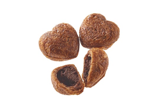 「デニッシュハート(生チョコ)」焼きたては中からチョコレートがとろ~り。チョコレートにこだわった、ココアデニッシュ生地のミニデニッシュハート。