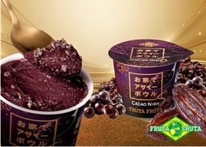 濃厚リッチなアサイーアイスに、アサイーボウルのトッピングとして人気のカカオニブをミックスしました。アサイー由来の良質なオイルと相まって、まるでチョコレートアイスのようなリッチな味わいです。 売価:本体378円(税込408.24円)※1 【販売概要】 販売開始日・展開店舗:
