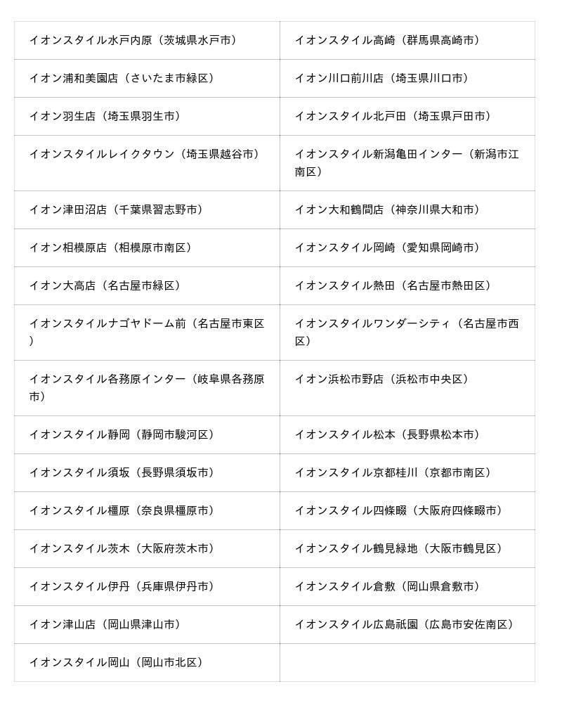 ※3:「イオンスタイルワンダーシティ」「イオンスタイル静岡」「イオンスタイル倉敷」はすでに販売しています。
