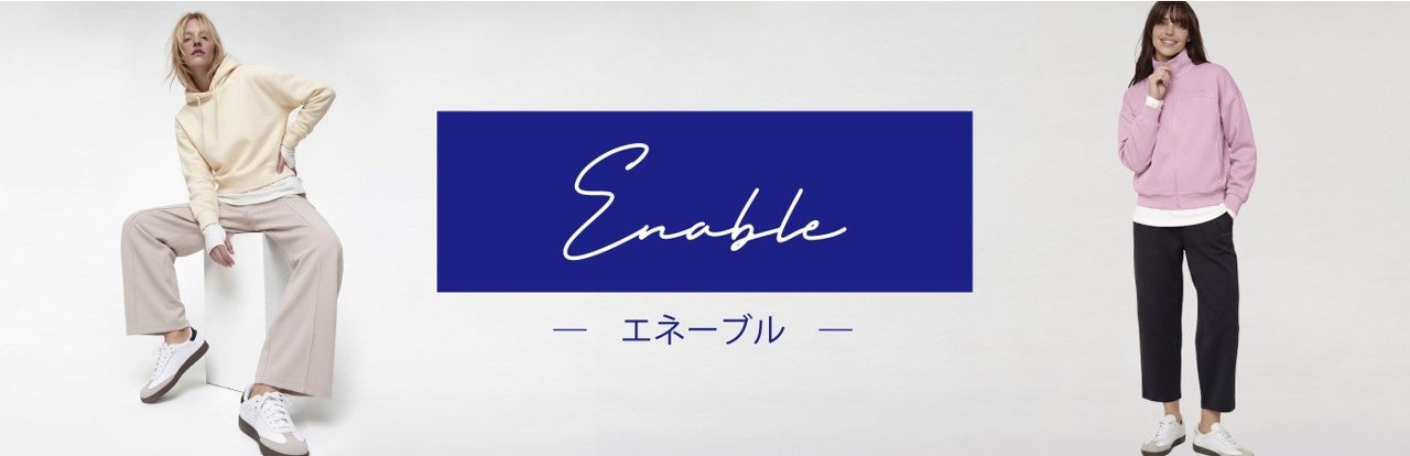 イオンリテールは3月10日(火)より、「イオン」「イオンスタイル」約90店舗※1)と「イオンスタイルオンライン」にて、新ブランド「Enable(以下、エネーブル)」からスウェット素材のライフアクティブウェアを販売します。