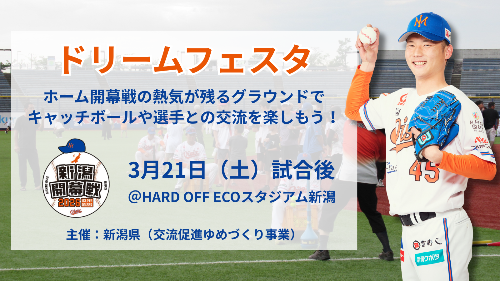 【オイシックス新潟】3/21(土)「ドリームフェスタ」開催決定!ホーム開幕戦の熱気の残るグラウンドで選手との交流やキャッチボールを楽しもう