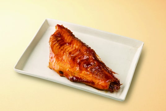 煮付けに使用するタレには2種の醤油(本醸造醤油・本醸造たまり醤油)を使用し、豊かな香りと深み、濃厚な旨味を演出しています。煮付けに適した「ザラメ」を使用することにより、上品な甘さが赤魚の旨味を引き立てています。