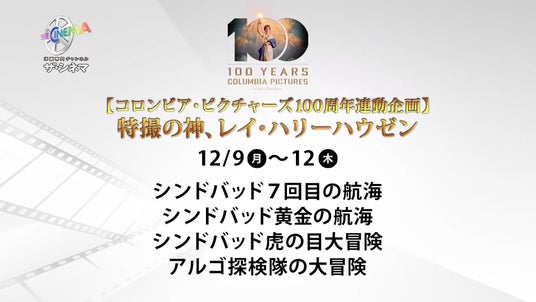 数々の名作を生み出し、アカデミー賞(R)作品賞最多受賞の、アメリカ5大スタジオのひとつ「コロンビア・ピクチャーズ」は、現在はソニー・ピクチャーズ エンタテインメントの傘下にあり、2024年1月に創立100周年を迎えました。12月は、“特撮技術の父”と賞されるレイ・ハリーハウゼンの代表作を特集放送。ストップモーションアニメで「スター・ウォーズ」など現代のSFや特撮に多大な影響を与え、多くの人に感動を与えた「特撮の神」の世界をお楽しみください。
