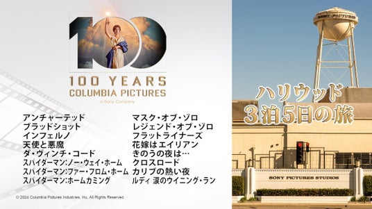 コロンビア・ピクチャーズ100周年を記念して、ザ・シネマではロサンゼルスのソニー・ピクチャーズ・スタジオをレポートする特派員1組2名様を大募集!4つ星ホテル宿泊、スタジオツアー、レストランでのディナー、ロサンゼルス一日観光など大充実の旅行!