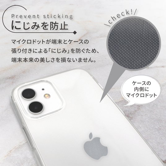 背面に施されたマイクロドット加工が、スマホとケースの間の密着を防止。