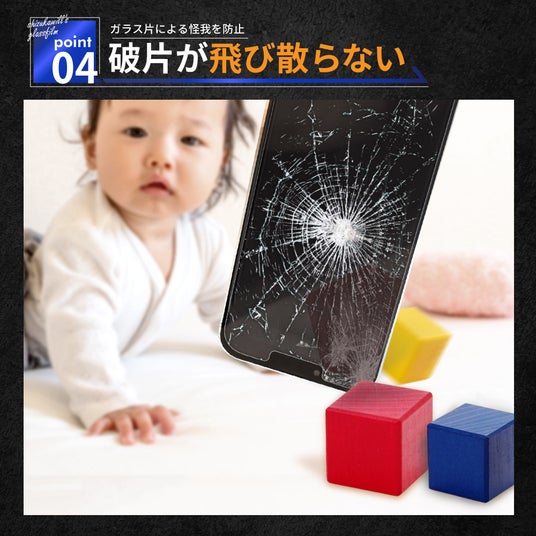 飛散防止PET層がガラス片の飛散を防ぎ、割れたガラスフィルムでの怪我を防止します。