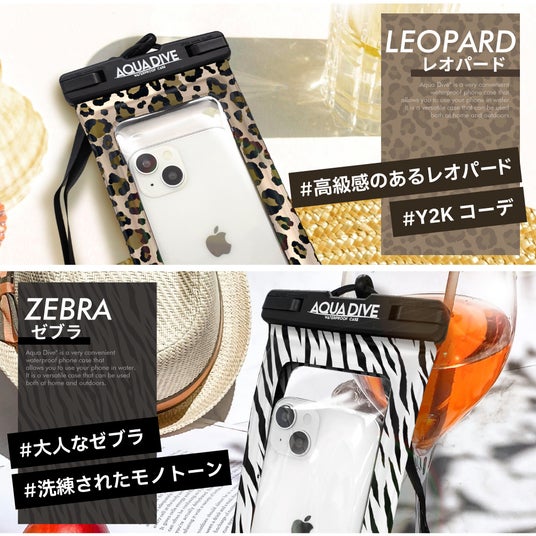 【シズカウィル】まだ間に合う!!びしょ濡れイベントにも最適!!365日どこでも使える防水ケース「 AQUADIVE アクアダイブ」に新色「アニマルプリント」登場!!