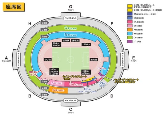 ※セイコーゴールデングランプリでは、応援エリアは設けておりません。応援をご希望の方は、B席をご利用ください。