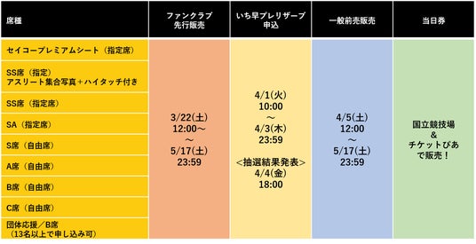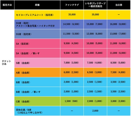 ※セイコープレミアムシート、SS席、SA席、S席、A席の購入でB席・C席での観戦が可能です。