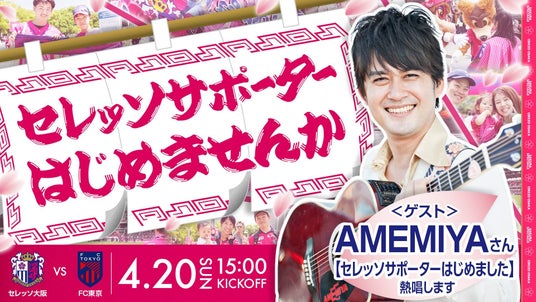 【セレッソ大阪】「セレッソサポーターはじめませんか」4/20(日)FC東京戦 AMEMIYAさん来場決定!